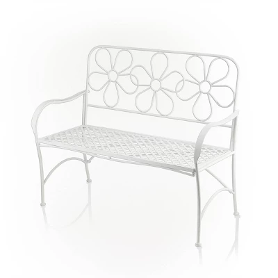 - METAL GARDEN BENCH: Features elegant daisies for a playful addition to your garden or patio