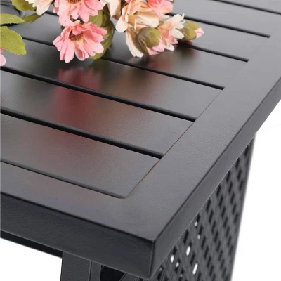 This furniture set is made of high-quality metal material for many years of usage. Chairs with the broad square back, you will feel like hugged by the chair and you can stretch yourself as you wish on this chair. The table with sturdy frame and slat table top provides the enough space for entertaining and relaxation indoor or outdoor.