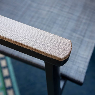 This chair offers comfy feeling when it serves as a dining chair or a conversation seat from Captiva Designs.Seat and back are made of complete sling.It saves the space when stackable.Metal frame and wood-like armrest give the authentic charm and impressive look.