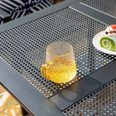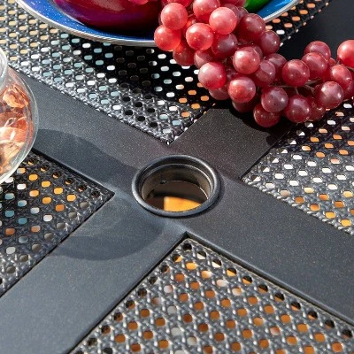 - 1 TABLE: Rust and weather resistant E-Coating steel table, Pre-cut umbrella hole: 1.56″, fits most umbrella without shaking, Weather resistant powder-coated steel frame, Dimensions: 37″L x 37″W x 28″H