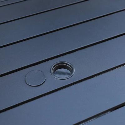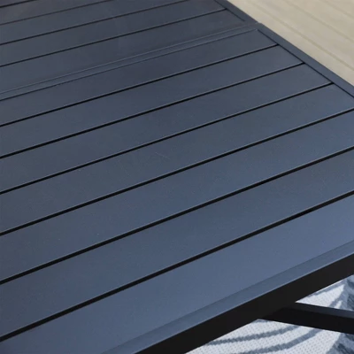 - Slatted Steel Table Top: The spacious 82.7″ rectangle table boasts a slatted design that prevents water accumulation and is easy to clean.