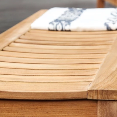 - NATURAL BEAUTY Natural unfinished, can be left outside to weather to a gray hue or teak oil can be applied to keep the original golden teak color