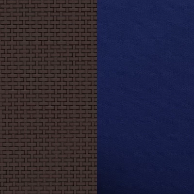 Create an amazing outdoor space with this comfortable and stylish chocolate brown patio loveseat. The durable resin frame offers a stylish appearance which replicates rattan. Deep seating enhances the comfort level. Navy all-weather cushions will hold up all season long. Clean spills with a water-based cleaner or the cushions are zipper removable for washing purposes. Curl up with your latest read, or just relax and enjoy the outdoors with family and friends and create lasting memories!