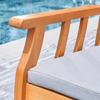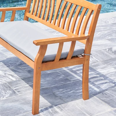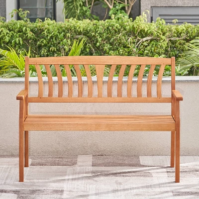 Crafted from solid Eucalyptus Hardwood and slatted design, this natural wood bench is a perfect weather-resistant option for your outdoor living.