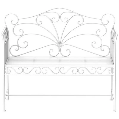 - Antique-Like Motifs: Swirling metal flourishes along the arms, sides, back, and seat, give our metal outdoor bench an antique look capable of adding instant elegant charm to your backyard, garden, sunroom, or other outside space.