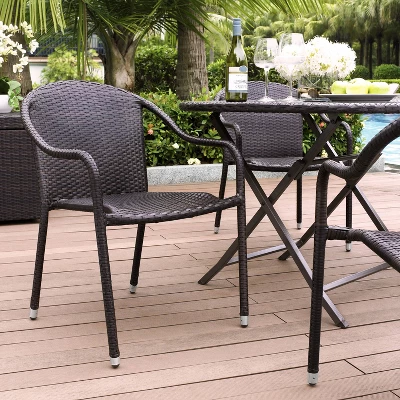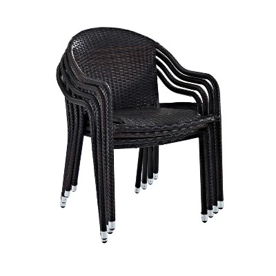 Welcome more people to the party with the Palm Harbor 4pc Stackable Chair Set. Finely crafted with intricately hand-woven wicker over durable steel frames, these generously-sized stackable chairs are lightweight and easy to store. Used as extra seating or gathered around an outdoor dining table, the Palm Harbor stackable chairs are a fabulous addition to your outdoor space.