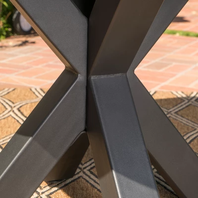 This Christopher Knight Home Sanibel 5pc Wicker Dining Set is one of the best you can find on the market for outdoor patios. Made with glassfibre reinforced light-weight concrete, this table was not only designed to stand up to the elements, but made with your comfort in mind. With enough space for four included chairs, you can host all summer long in your backyard and never have to worry about your table. This set is a one stop shop for all of your table and seating needs.