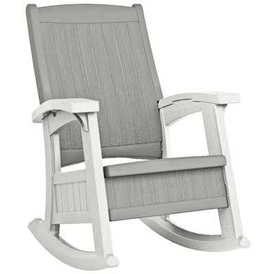 Sit back and relax in the 2-pack of Suncast Outdoor Portable Patio Rocking Chairs. As you rock back and forth, feeling the gentle breeze on your skin, you can’t help but notice the stylish design of these chairs.These patio rocking chairs are comfortable, stylish, and convenient, making them ideal for any outdoor environment. Constructed from durable, multi-wall plastic, these portable chairs are distinguished by a classic yet modern faux wood grain design, making them an ideal part of any deck or patio furniture layout.Not only are these rocking seats visually appealing, but they’re also practical. With a weight capacity of 375 pounds, these chairs with storage are sturdy enough to accommodate people of all sizes. Offering 7 gallons of storage space beneath the seats, the lawn chairs can conveniently hold small chair cushions, blankets, and other patio accessories all year long.Add this 2-pack of Suncast Portable Patio Rocking Chairs to your outdoor furniture collection so you can enjoy warm summer evenings, relax while reading a book, and so much more!